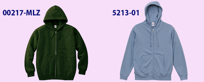United Athleの「5213-01 10.0オンス スウェット フルジップ パーカ(裏パイル)」を比較してみました。