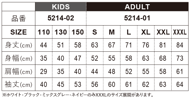 ※フードひもは丸ひも身頃同色、5214-02のみフードひもなし