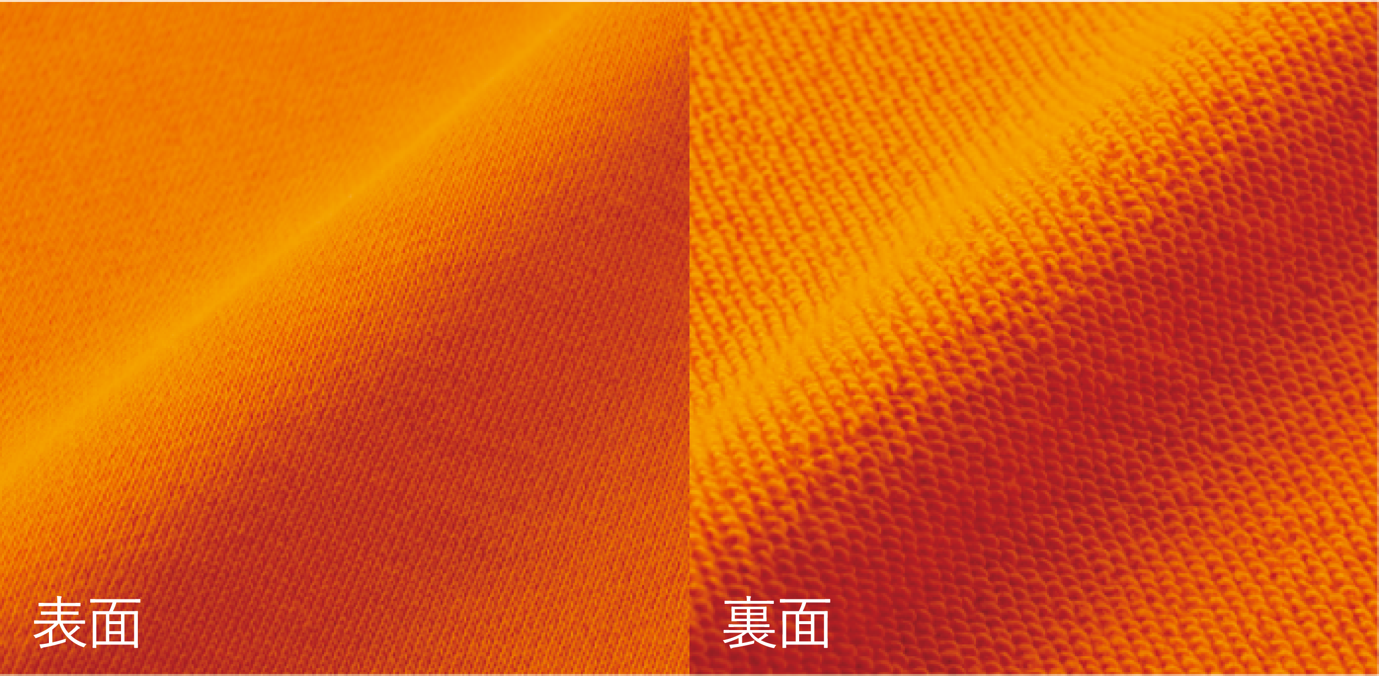 裏パイル(別名「裏毛」)は、タオルのようなループが特長で、汗などの吸水が良い素材。